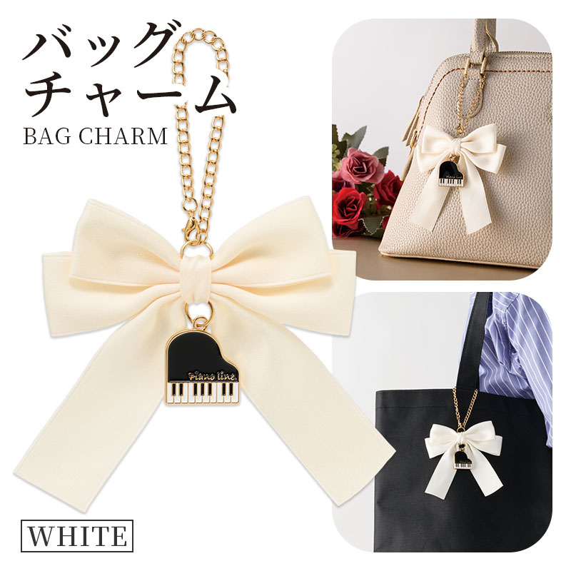 ピアノライン ダブルリボンバッグチャーム(グランドピアノ) ホワイト