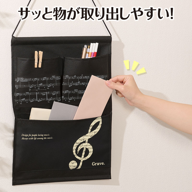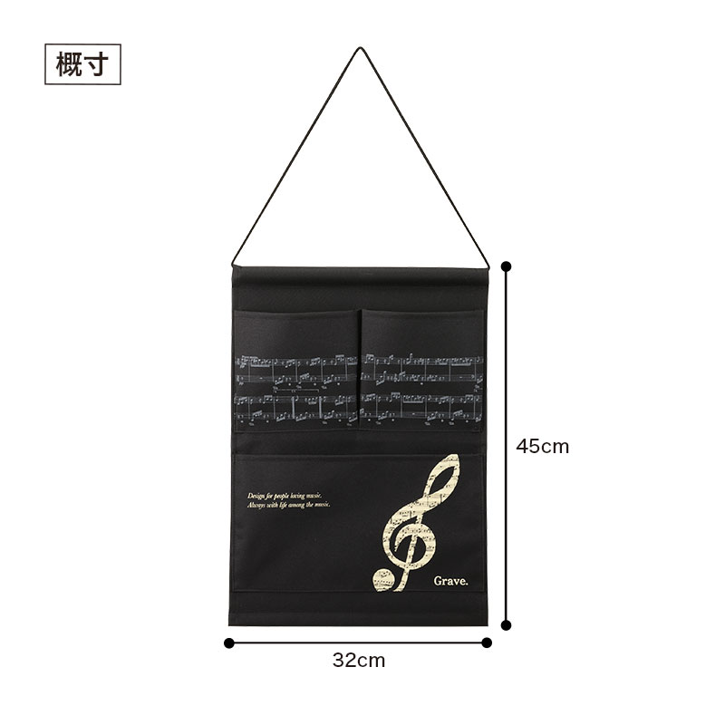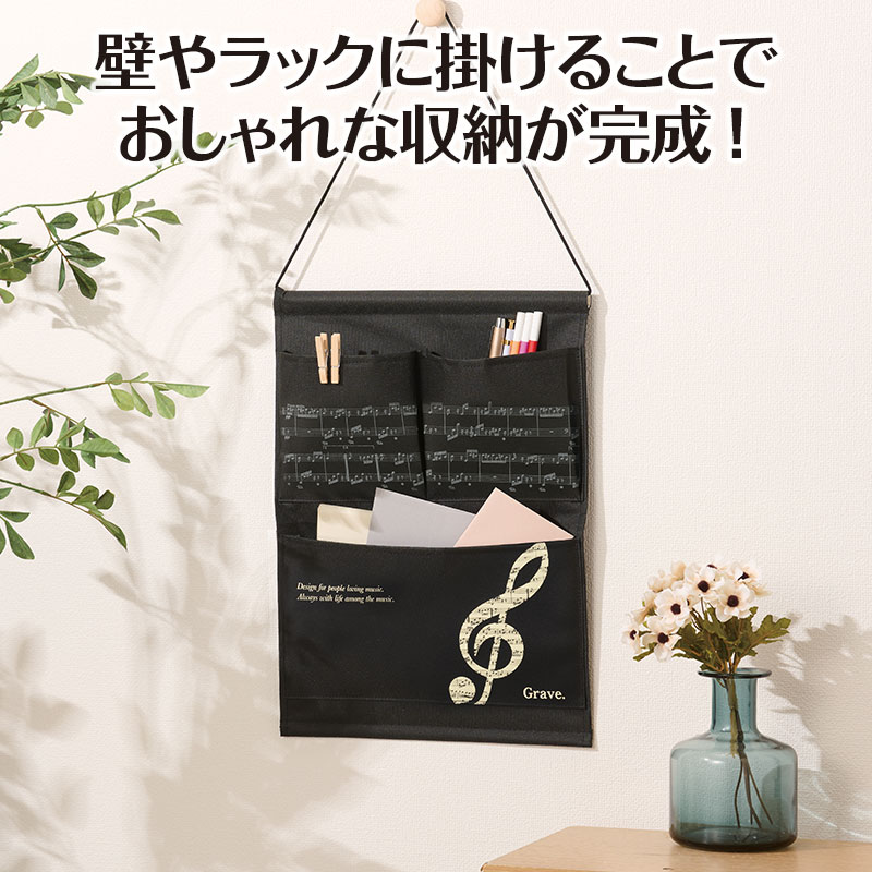 ピアノライン ポケット付きボックスティッシュケース(ト音記号)