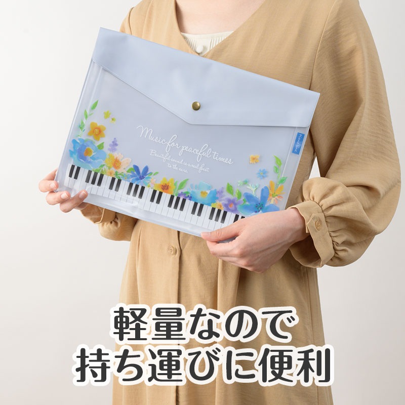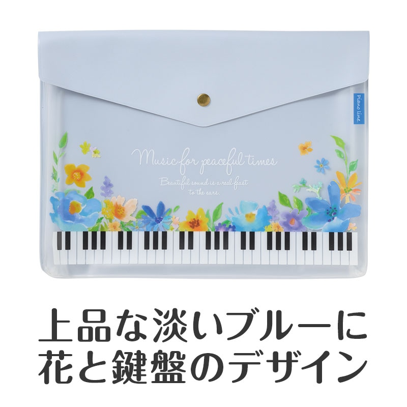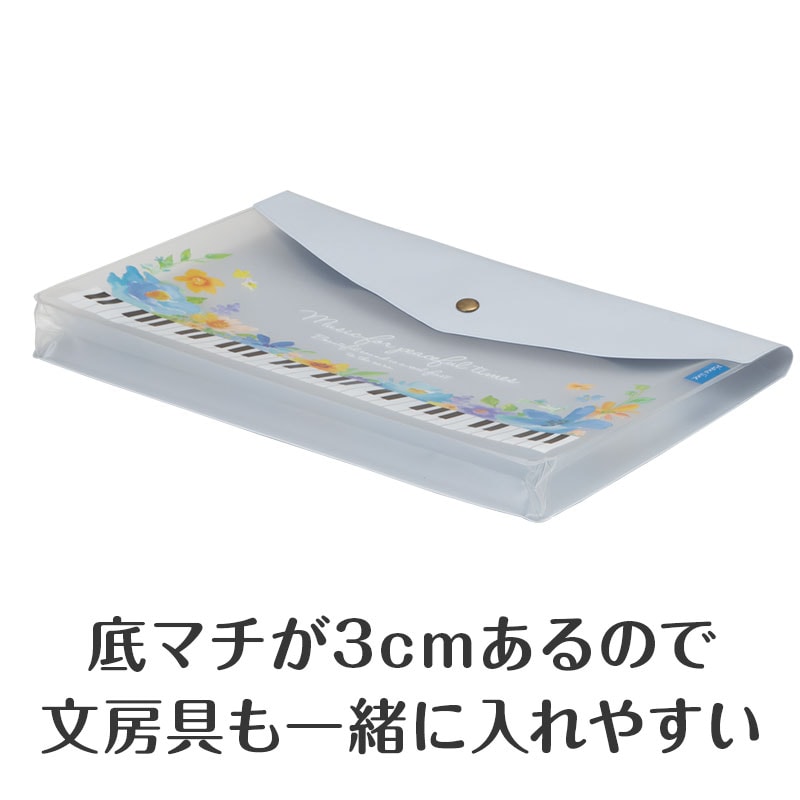 ピアノライン マチ付き楽譜ケース A4(フラワー)ブルー