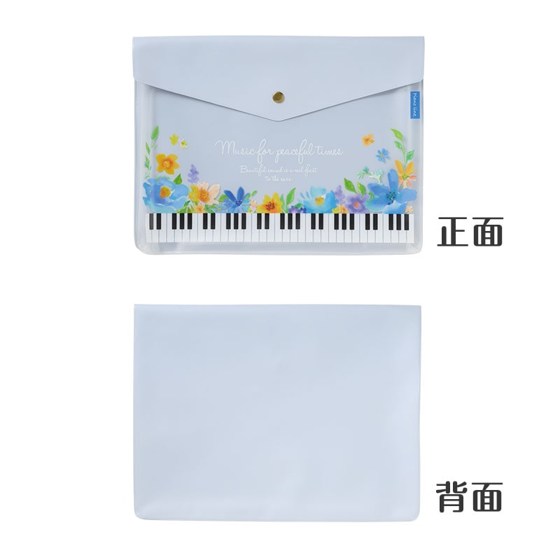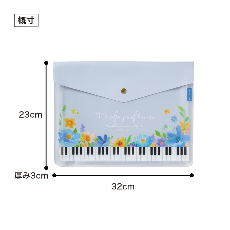 淡い上品なブルーに花柄と鍵盤モチーフが映える、爽やかで華やかなデザインが魅力です。