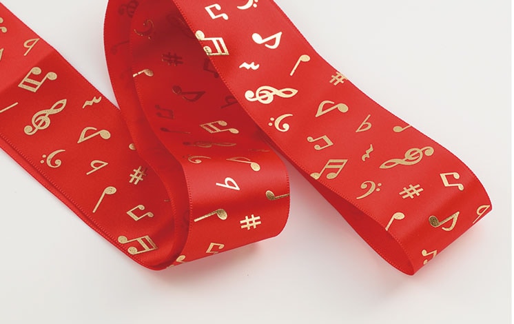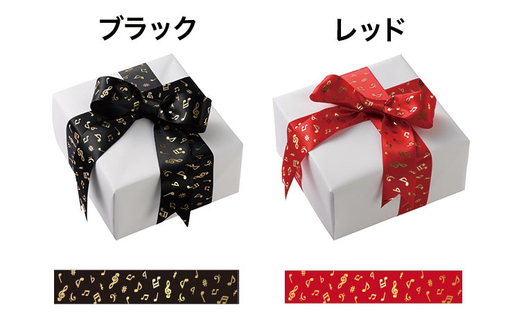 - ラッピング用 箔押しリボン 38mm幅(音符)レッド