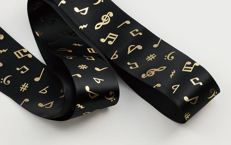 - ラッピング用 箔押しリボン 38mm幅(音符)ブラック