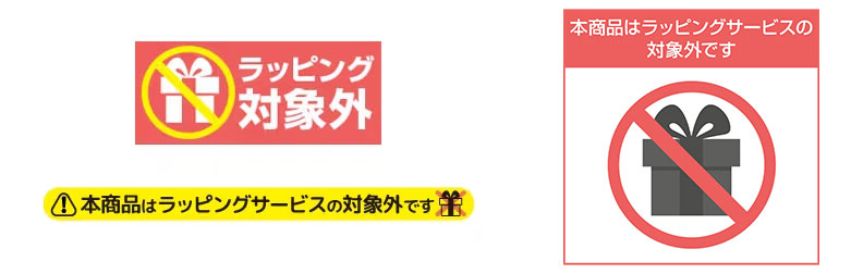 無料ラッピング対象外の商品については、商品ページ内に下記のアイコンを表示し、ご案内しております。ラッピングをご希望の方は、お手数ですがご購入前に商品がラッピング対象外でないかご確認ください。