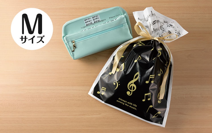 こちらの商品はラッピング用リボン付き巾着袋(音符)2枚入り Mサイズです