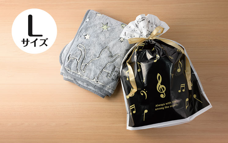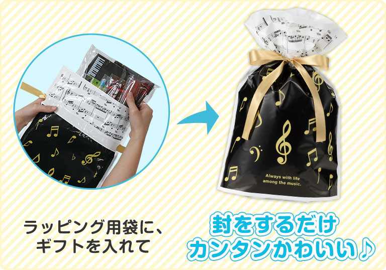 - ラッピング用 リボン付き巾着袋(音符)2枚入り Lサイズ