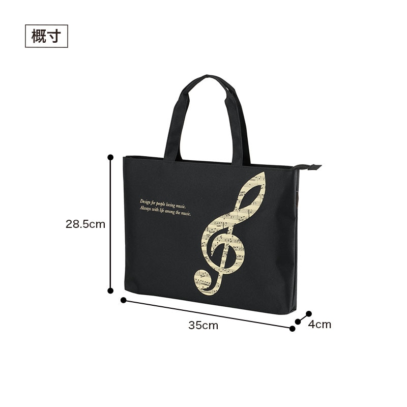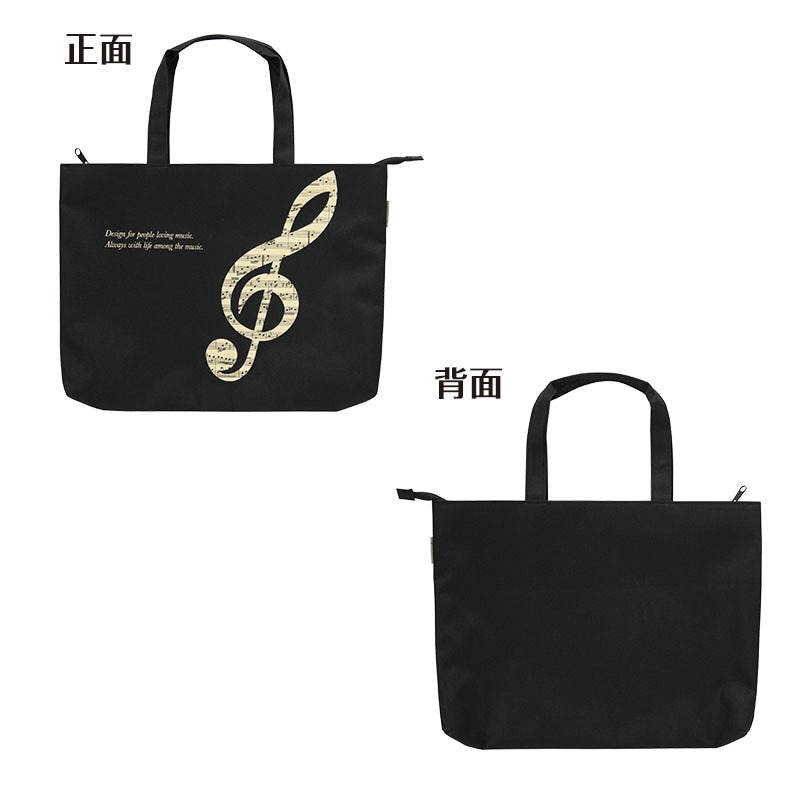 ピアノライン ファスナー付き撥水コートバッグ(ト音記号)パープル