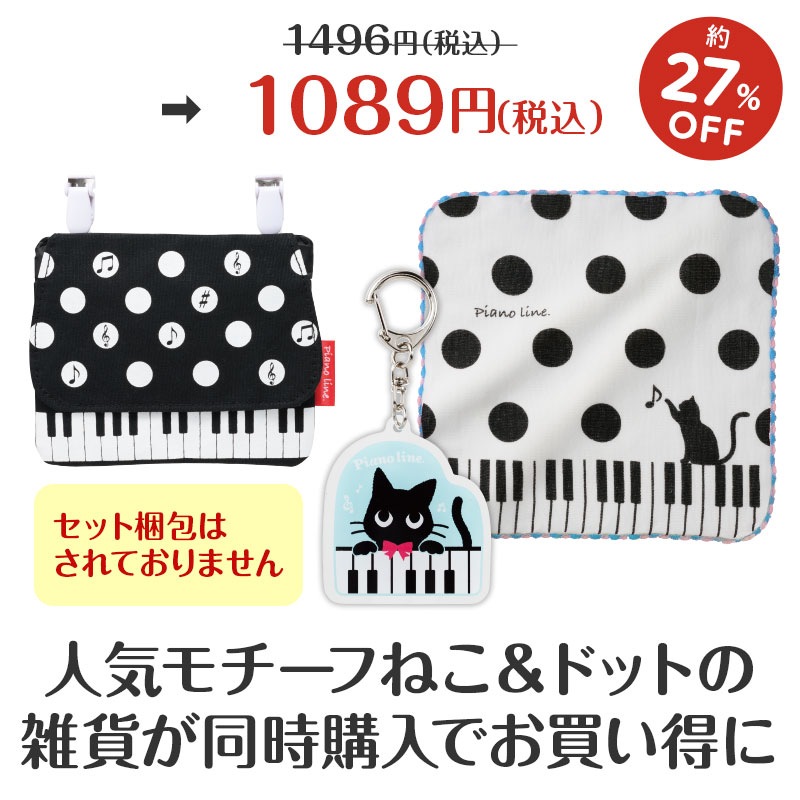 | 素材 | ピアノライン アクリルキーホルダー(ねこ)/アクリル樹脂 ピアノライン ポケットポーチ(水玉)/綿・ポリエステル ピアノライン 無撚糸ガーゼハンカチ(ねこと水玉)/ 綿 |